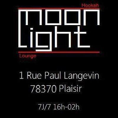 Moon Light : 1 rue Paul Langevin 78370 PLAISIR 7j/7 de 16h00 a 02h00 Ambiance chaleureuse avec divers chichas et un large choix de gouts (Al Fakher) Facebook: Moon Light lounge